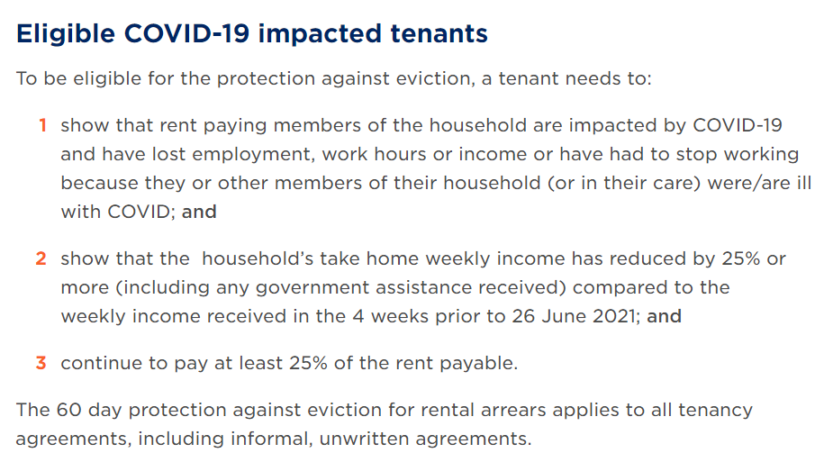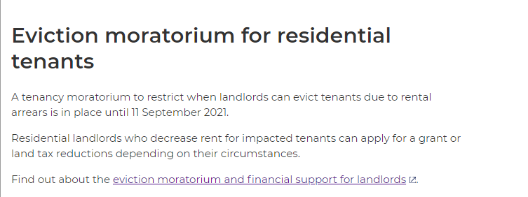 前段时间,我们与大家分享过新州政府宣布:从2021年7月14日至2021年9月11日,新州实施60天禁止驱逐令,对于受COVID疫情影响而收入减少的租客,如果出现无法支付全额租金的情况,房东将在这一时间段内不能驱逐这些租客,且此禁令适用于所有租赁协议,也就是说不仅是住宅物业租户,商业和零售业的租户也得到了保护,在此期间不会被关门或驱逐。但与此同时,如果房东愿意为陷入经济困难的租户减租的话,那么新州政府将对其发放一次性补助(每租约),补助金额为房东为租客减免的租金金额或者1500澳币——两者进行比较,以较低的金额为补助金额或者获得最高100%的2021年土地税优惠。